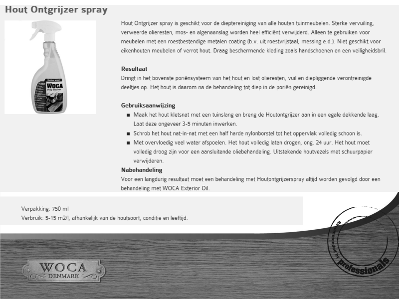 Heeft ook de kleur van uw tuinmeubelen onder de blootstelling aan het soms barre winterweer geleden? Dan gebruikt u beter een ontgrijzer die naast vuil ook verweerde olieresten, deklagen en grijze patina verwijdert. De WOCA Hout Ontgrijzer is bijvoorbeeld eenvoudig aan te brengen en dringt eveneens diep in het hout door. Zo straalt uw tuinhout opnieuw in zijn natuurlijke kleur.